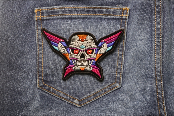 You can sew on our skull patches if it's going on leather or nylon. You can always iron them on to denim pants.