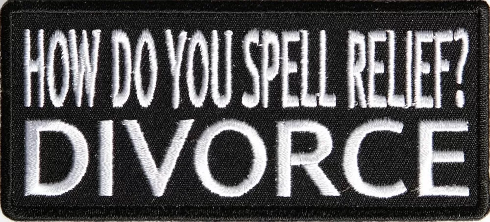 How Do You Spell Relief? Divorce! D I V O R C E . I wonder how many divorces vs marriages they are yearly? However, I do know at least a few of my friends have been there done that and found relief through a divorce. If you are one of them, you must know the patch speaks the truth.