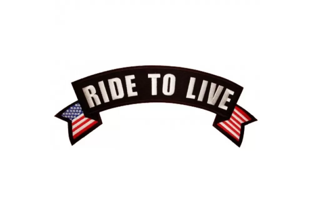 • Ride to Live Rocker with American Flags embroidered at the tips measing 11x4.5 inches.