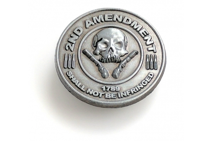 This 2nd Amednment pin measures 1.25 inches. The zinc alloy pin features single nail clutch backing for fast and easy assembly. Also comes in a patch version as well.