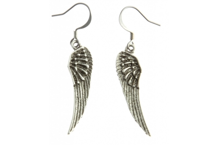 • Great detail in the engraving of these half angel wing ear rings measuring 1.5 inches tip to tip.