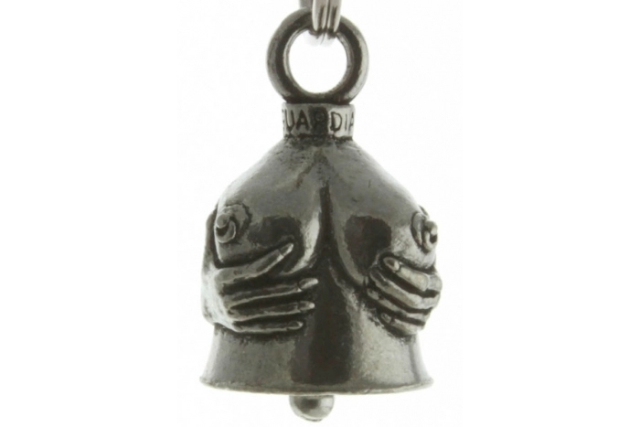 Genuine Guardian® Bell in the shape of boobies with a pair of hands holding up perky.