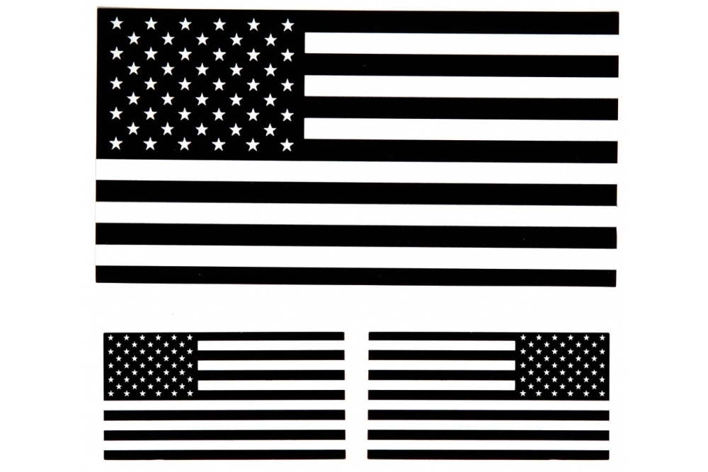 Black White US Flag Stickers - (1) 5.5x2.9 in (2) 2.5x1.3 in