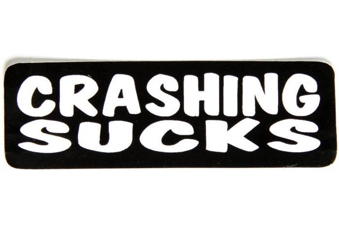 Crashing sucks sticker is small in size measuring 3.5x1 inches. Applied by simple peel and stick. The sticker is made of vinyl and will stretch over curves, can be applied to motorcycle or riding helmets. The sticker is weather resistant and made in USA.