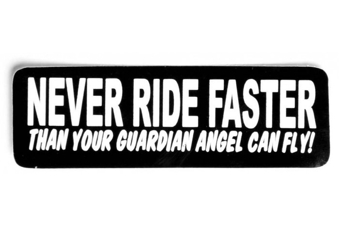 Never Ride Faster Than Your Guardian Angel Can Fly Sticker - 3.5x1 inch