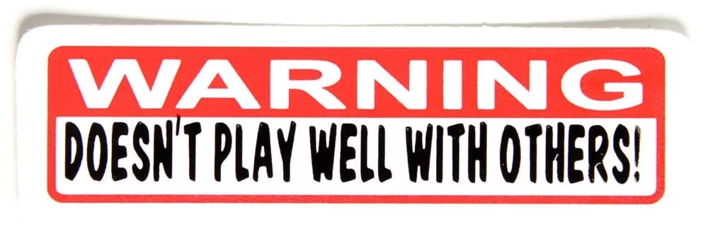 Warning Doesn't Play Well With Others Sticker - 3.5x1 inch