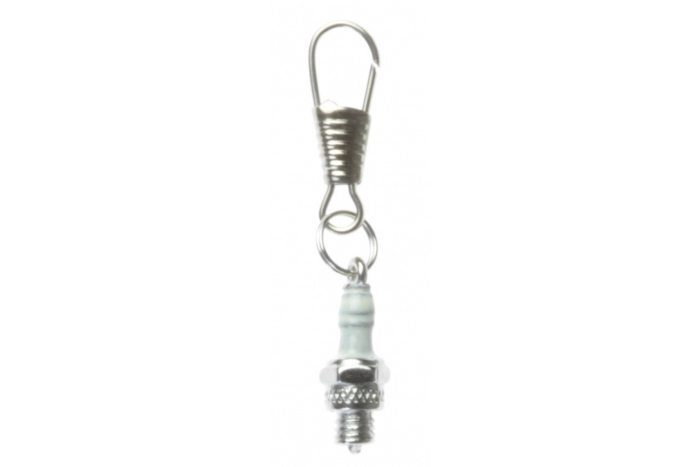 • The zipper pull features a spark plug that is silver coated measuing about 3/4 inches.