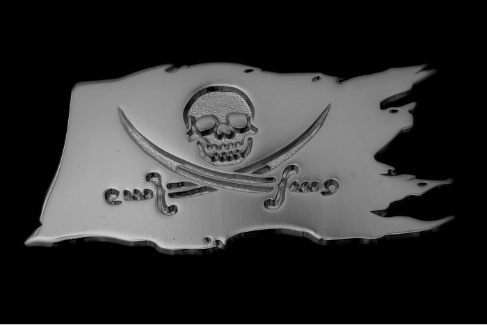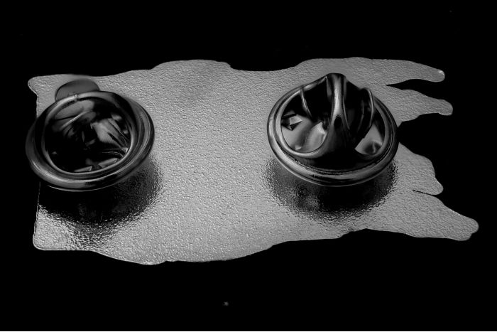 Pirate Flag Pin is a 3 mm thick heavy duty biker pin featuring 2 nail backings to ensure it won't spin out of orientation when it's attached to your vest or jacket. The pin measures 1.5x1.03 inches. It has a silver color finish and is made out of lead free pewter material.
