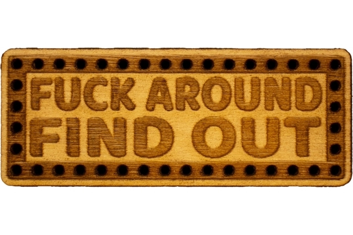 We have a better version of this Fuck Around Find Out wood engraving. We stopped making this kind out of plywood. We now use quarter inch thick Solid Oak from Appalachia. Check out the better version of this Fuck Around Find Out Patch