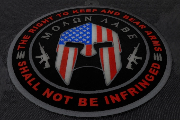 - Molon Labe US Flag Spartan Helmet, The Right to Keep and Bear Arms Shall Not Be Infringed Patch