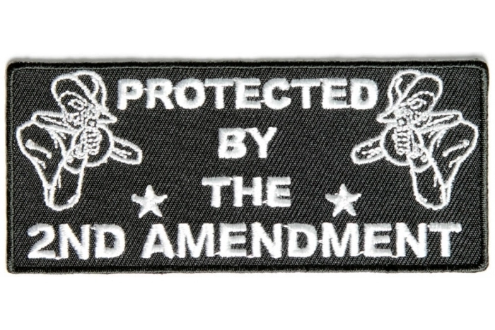 Rectangle Protected by 2nd amendment tommy skull patch is an embroidered iron on patch measuring 4x1.75 inches. Embroidered in Black / White with die cut borders for easy sewing
