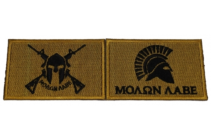 - Set of 2 Molon Labe Spartan Helmet Flag Patches