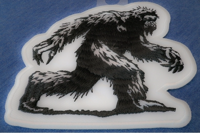 Hey all you urban legend, monster, and alien fans, we have an embroidered patch that's going to change your life. It is the Big Foot patch featuring your favorite elusive creature in all his black-and-white glory. Just imagine all those Bigfoot photos you have seen combined into one and depicted in embroidery. This is a masterpiece!