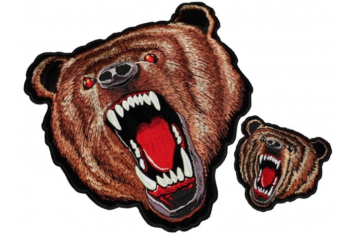 Brown Bear White Teeth Two Piece Patch Set - 4 - 10 inches