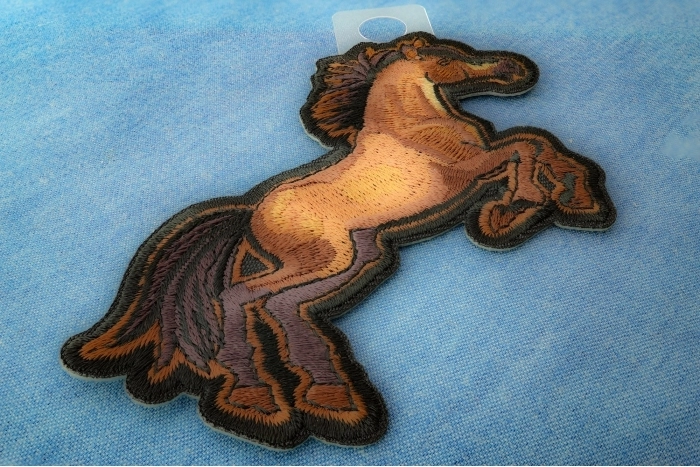 Brown Horse Patch measures 3.1x4 inches and is Embroidered in Black / Brown. The patch can be sewn on to Leather Biker Jackets, Vests or Chaps. The patch can also be ironed on to Shirts, Hats or Denim material such as Jeans. Features plastic iron on backing and clean laser cut embroidered borders. Japanese made iron on glue requires temperature between 270-290 Degrees Fahrenheit. Use a heat press for 30 seconds to adhere the patch permanently to your clothing. Using a regular household iron will probably not be as permanent as one hopes. If possible we recommend you sew on your patches for a more durable application. Never iron on patches to Leather or Nylon materials.