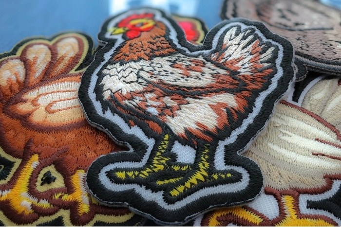 Chicken Patch measures 2.5x3.5 inches and is Embroidered in Black / Brown. The patch can be sewn on to Leather Biker Jackets, Vests or Chaps. The patch can also be ironed on to Shirts, Hats or Denim material such as Jeans. Features plastic iron on backing and clean laser cut embroidered borders. Japanese made iron on glue requires temperature between 270-290 Degrees Fahrenheit. Use a heat press for 30 seconds to adhere the patch permanently to your clothing. Using a regular household iron will probably not be as permanent as one hopes. If possible we recommend you sew on your patches for a more durable application. Never iron on patches to Leather or Nylon materials.
