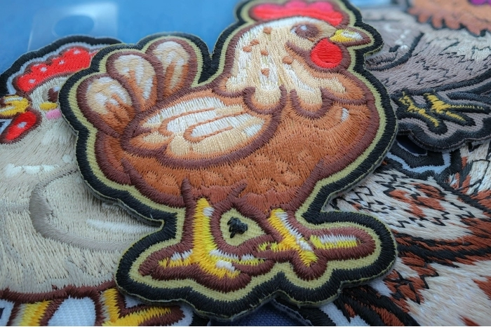 Chicken Patch measures 2.75x3.5 inches and is Embroidered in Black / Yellow. The patch can be sewn on to Leather Biker Jackets, Vests or Chaps. The patch can also be ironed on to Shirts, Hats or Denim material such as Jeans. Features plastic iron on backing and clean laser cut embroidered borders. Japanese made iron on glue requires temperature between 270-290 Degrees Fahrenheit. Use a heat press for 30 seconds to adhere the patch permanently to your clothing. Using a regular household iron will probably not be as permanent as one hopes. If possible we recommend you sew on your patches for a more durable application. Never iron on patches to Leather or Nylon materials.