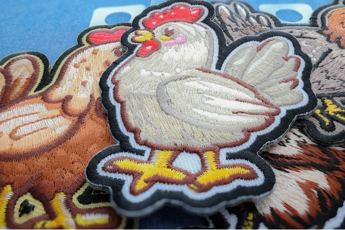 Chicken Patch measures 2.7x3.5 inches and is Embroidered in Black / White / Red. The patch can be sewn on to Leather Biker Jackets, Vests or Chaps. The patch can also be ironed on to Shirts, Hats or Denim material such as Jeans. Features plastic iron on backing and clean laser cut embroidered borders. Japanese made iron on glue requires temperature between 270-290 Degrees Fahrenheit. Use a heat press for 30 seconds to adhere the patch permanently to your clothing. Using a regular household iron will probably not be as permanent as one hopes. If possible we recommend you sew on your patches for a more durable application. Never iron on patches to Leather or Nylon materials.