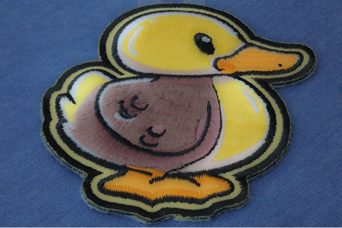 Cute Baby Duck Patch measures 3x3.5 inches and is Embroidered in Black / Yellow. The patch can be sewn on to Leather Biker Jackets, Vests or Chaps. The patch can also be ironed on to Shirts, Hats or Denim material such as Jeans. Features plastic iron on backing and clean laser cut embroidered borders. Japanese made iron on glue requires temperature between 270-290 Degrees Fahrenheit. Use a heat press for 30 seconds to adhere the patch permanently to your clothing. Using a regular household iron will probably not be as permanent as one hopes. If possible we recommend you sew on your patches for a more durable application. Never iron on patches to Leather or Nylon materials.