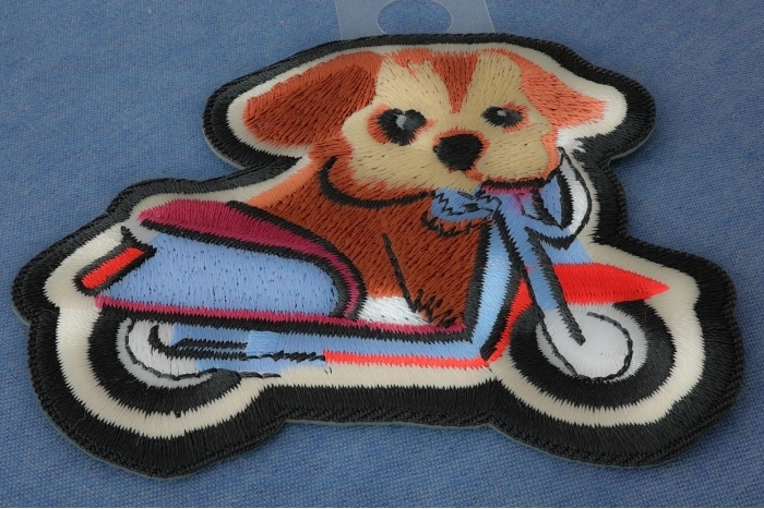 Biker Dog Iron on Patch measures 3.25x3 inches and is Embroidered in Black / Brown / Blue. The patch can be sewn on to Leather Biker Jackets, Vests or Chaps. The patch can also be ironed on to Shirts, Hats or Denim material such as Jeans. Features plastic iron on backing and clean laser cut embroidered borders. Japanese made iron on glue requires temperature between 270-290 Degrees Fahrenheit. Use a heat press for 30 seconds to adhere the patch permanently to your clothing. Using a regular household iron will probably not be as permanent as one hopes. If possible we recommend you sew on your patches for a more durable application. Never iron on patches to Leather or Nylon materials.