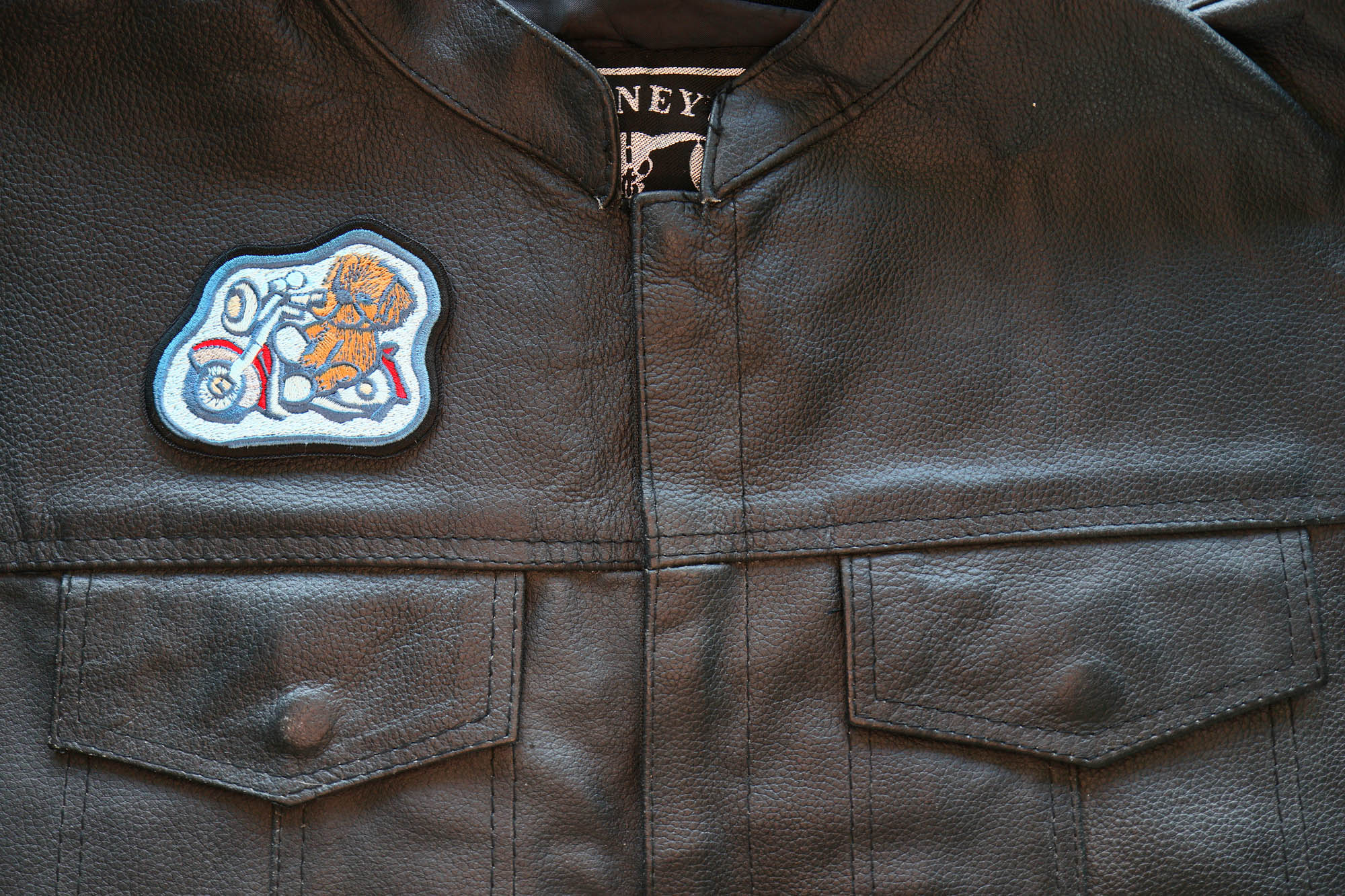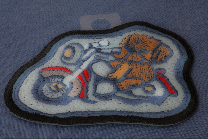 Doggy Biker Iron on Patch measures 3.5x2.75 inches and is Embroidered in Black / Brown / Blue. The patch can be sewn on to Leather Biker Jackets, Vests or Chaps. The patch can also be ironed on to Shirts, Hats or Denim material such as Jeans. Features plastic iron on backing and clean laser cut embroidered borders. Japanese made iron on glue requires temperature between 270-290 Degrees Fahrenheit. Use a heat press for 30 seconds to adhere the patch permanently to your clothing. Using a regular household iron will probably not be as permanent as one hopes. If possible we recommend you sew on your patches for a more durable application. Never iron on patches to Leather or Nylon materials.