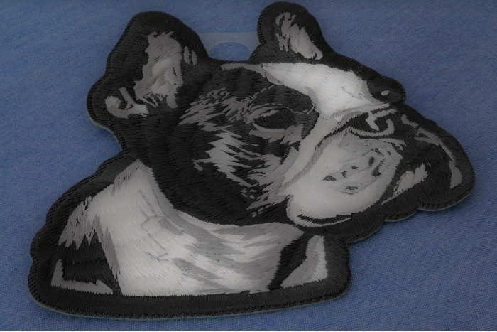 French Bulldog Patch measures 4x3 inches and is Embroidered in Black / Gray / White. The patch can be sewn on to Leather Biker Jackets, Vests or Chaps. The patch can also be ironed on to Shirts, Hats or Denim material such as Jeans. Features plastic iron on backing and clean laser cut embroidered borders. Japanese made iron on glue requires temperature between 270-290 Degrees Fahrenheit. Use a heat press for 30 seconds to adhere the patch permanently to your clothing. Using a regular household iron will probably not be as permanent as one hopes. If possible we recommend you sew on your patches for a more durable application. Never iron on patches to Leather or Nylon materials.