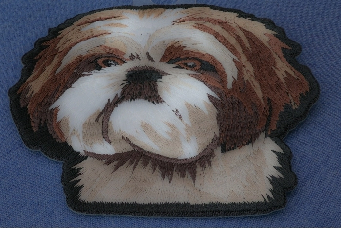 This patch's designer did an excellent job replicating the multiple colors on a typical shitzu's face. Different colors of thread create the depth necessary to make this look like a real dog, or a reasonable facsimile. Either way, we think this is a beautiful piece worthy of any biker who also loves dogs.