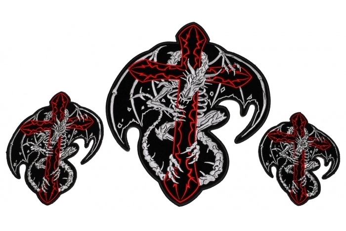 - Dragon Around Red Cross Small Medium and Large 3 Piece Patch Set