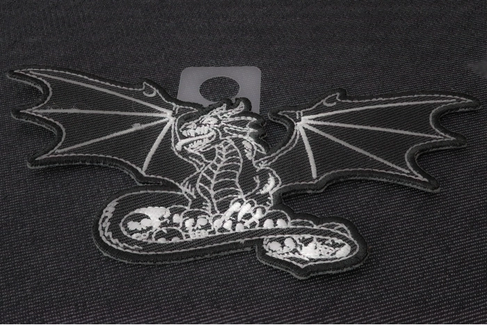 Dragon with Skulls Patch measures 5x2.5 inches and is Embroidered in Black / White. This Dragon and Skulls Patch is also available in a reflective version as well. This particular one however is embroidered over black twill material in white embroidery thread. It's a neat simple design featuring a dragon with spread wings and a tail wrapping around a bunch of human skulls depicting his deadly appetite for human flesh. While you can find the black version in a small size only, the reflective Dragon patch is available in both a large back patch and a small front pocket patch. It's always a good idea to have a reflective patch on your jacket to increase your chances of another driver actually seeing you at night. For safety it's better to have a reflective patch on your jacket vs not having one. Although it doesn't mean it would be a life saver at every situation it will really increase your chances of being seen.