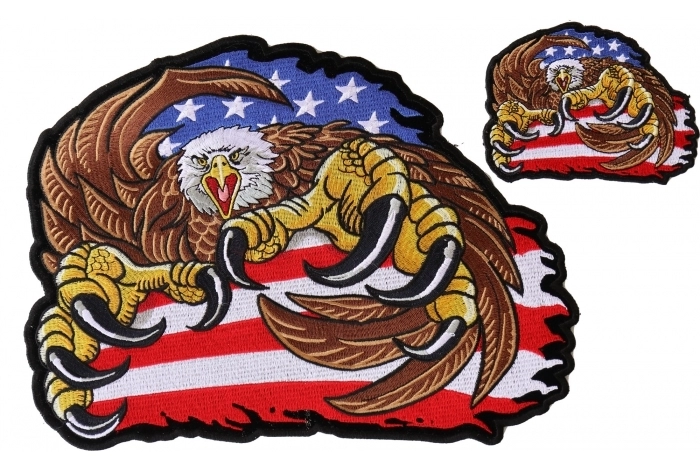 Claw Eagle with American flag Small and Large Patch Set - 4.3 - 11.2 inches