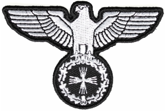 Eagle on Crest Iron on Patch measures 3x2 inches and is Embroidered in Black / White. The Small Patch can be sewn on or ironed on to clothing such as Denim or Leather Jackets, Vests, Hats, Back Packs, Shirts. Features plastic backing and embroidered die cut borders.