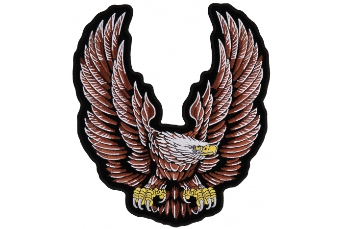 Federal Upwing Eagle patch is a large patch measuring 11x10 inch. Apply to your clothing by either ironing on or sewing it on. Please do not iron on patches to leather or nylon material. The patch features a nice embroidered die cut border making it easy to sew on when ironing on is not an option. Please remember using a household iron will not produce professional results. Both heat and pressure is required to adhere an iron on patch properly to a garment. We always recommend you sew on these large back patches if you do not have a heat press.