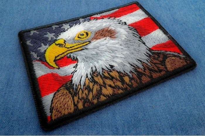Patriot Eagle Patch measures 3x3 inches and is Embroidered in Black / Yellow / White / Brown. The patch can be sewn on to Leather Biker Jackets, Vests or Chaps. The patch can also be ironed on to Shirts, Hats or Denim material such as Jeans. Features plastic iron on backing and clean laser cut embroidered borders. Japanese made iron on glue requires temperature between 270-290 Degrees Fahrenheit. Use a heat press for 30 seconds to adhere the patch permanently to your clothing. Using a regular household iron will probably not be as permanent as one hopes. If possible we recommend you sew on your patches for a more durable application. Never iron on patches to Leather or Nylon materials.