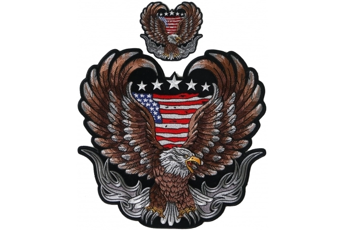 Patriotic Brown Eagle Patch set with American Flags - 4 - 12 inches