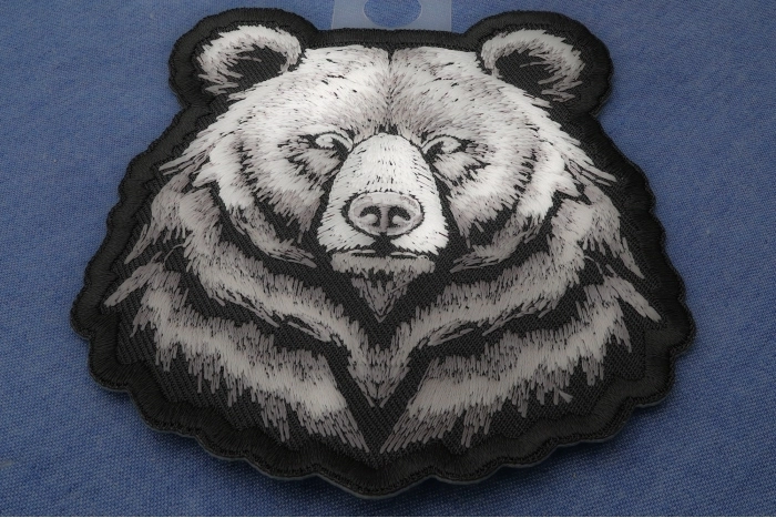 Bear Stare Patch measures 3.5x4 inches and is Embroidered in Black / White / Gray. The patch can be sewn on to Leather Biker Jackets, Vests or Chaps. The patch can also be ironed on to Shirts, Hats or Denim material such as Jeans. Features plastic iron on backing and clean laser cut embroidered borders. Japanese made iron on glue requires temperature between 270-290 Degrees Fahrenheit. Use a heat press for 30 seconds to adhere the patch permanently to your clothing. Using a regular household iron will probably not be as permanent as one hopes. If possible we recommend you sew on your patches for a more durable application. Never iron on patches to Leather or Nylon materials.
