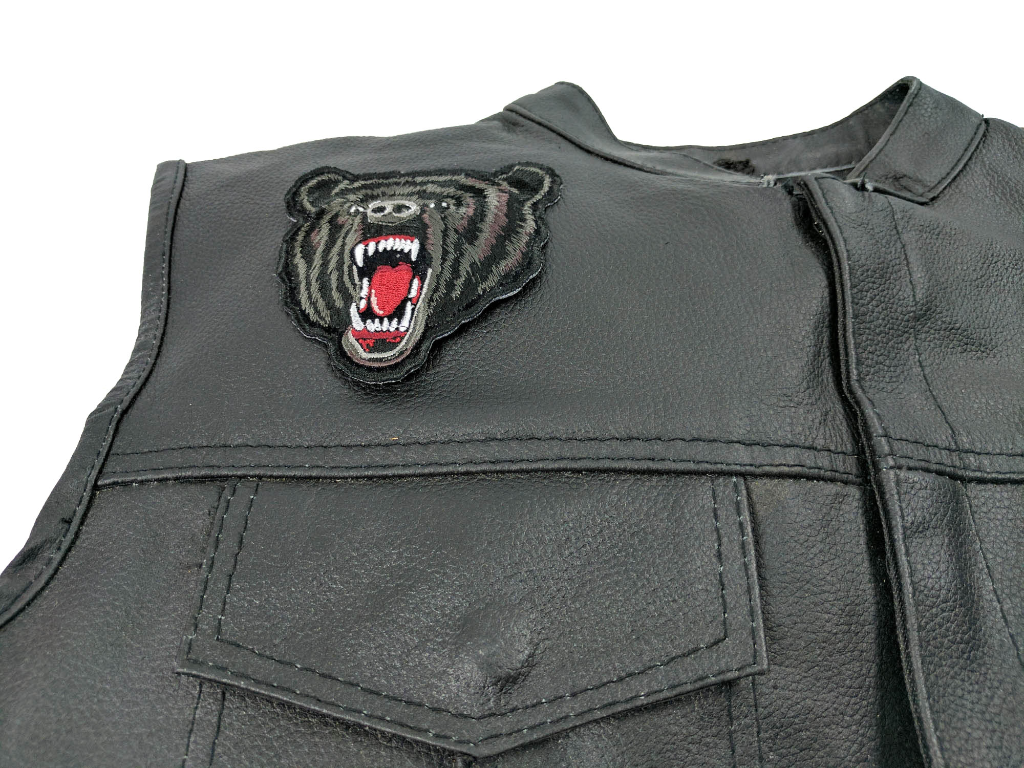 Small Black Bear Biker Iron on Patch - 3.5x4 inch