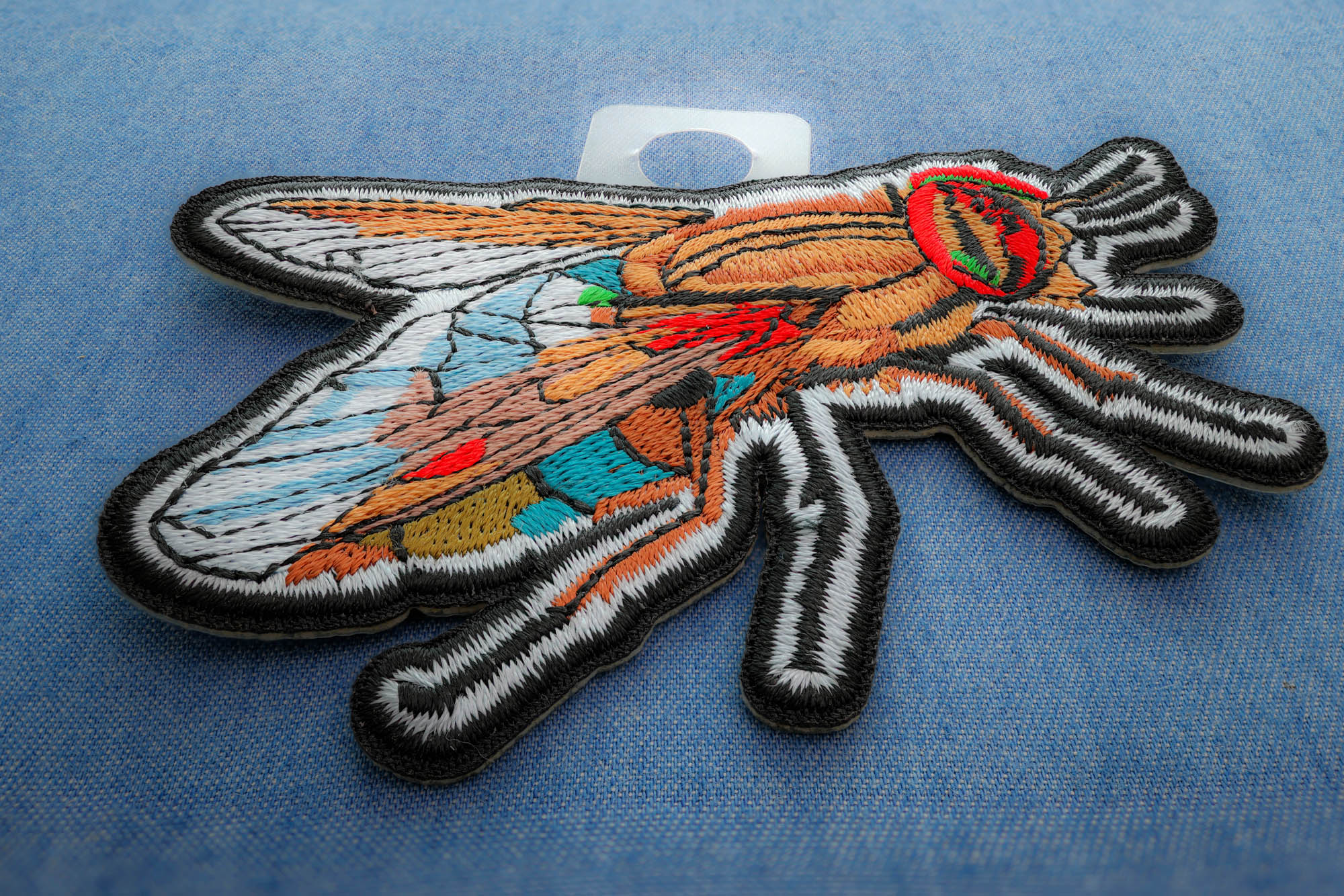 Fly Patch measures 3.5x2.5 inches and is Embroidered in Black / Blue / Brown. The patch can be sewn on to Leather Biker Jackets, Vests or Chaps. The patch can also be ironed on to Shirts, Hats or Denim material such as Jeans. Features plastic iron on backing and clean laser cut embroidered borders. Japanese made iron on glue requires temperature between 270-290 Degrees Fahrenheit. Use a heat press for 30 seconds to adhere the patch permanently to your clothing. Using a regular household iron will probably not be as permanent as one hopes. If possible we recommend you sew on your patches for a more durable application. Never iron on patches to Leather or Nylon materials.