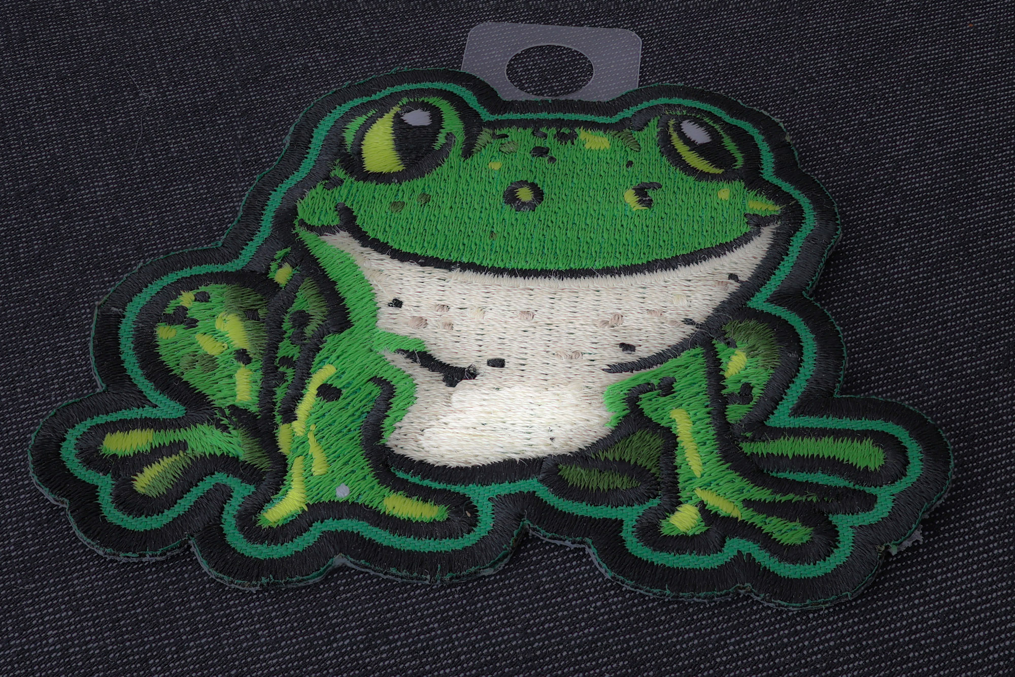 Green Frog Patch measures 3.5x3.2 inches and is Embroidered in Black / Green. The patch can be sewn on to Leather Biker Jackets, Vests or Chaps. The patch can also be ironed on to Shirts, Hats or Denim material such as Jeans. Features plastic iron on backing and clean laser cut embroidered borders. Japanese made iron on glue requires temperature between 270-290 Degrees Fahrenheit. Use a heat press for 30 seconds to adhere the patch permanently to your clothing. Using a regular household iron will probably not be as permanent as one hopes. If possible we recommend you sew on your patches for a more durable application. Never iron on patches to Leather or Nylon materials.