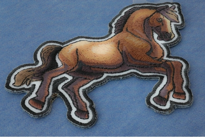 Horse Patch measures 3.2x4 inches and is Embroidered in Black / White / Brown. The patch can be sewn on to Leather Biker Jackets, Vests or Chaps. The patch can also be ironed on to Shirts, Hats or Denim material such as Jeans. Features plastic iron on backing and clean laser cut embroidered borders. Japanese made iron on glue requires temperature between 270-290 Degrees Fahrenheit. Use a heat press for 30 seconds to adhere the patch permanently to your clothing. Using a regular household iron will probably not be as permanent as one hopes. If possible we recommend you sew on your patches for a more durable application. Never iron on patches to Leather or Nylon materials.