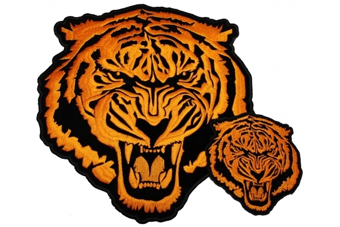 - Large Orange Tiger Embroidered Patch Set Small and Large