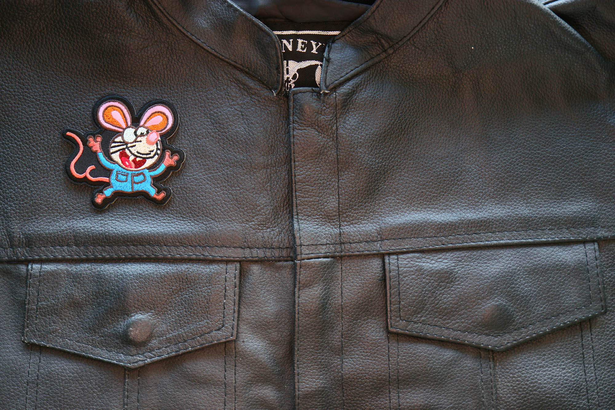Nerdy Rat Iron on Patch measures 3x2.88 inches and is Embroidered in Black / Brown / Blue. The patch can be sewn on to Leather Biker Jackets, Vests or Chaps. The patch can also be ironed on to Shirts, Hats or Denim material such as Jeans. Features plastic iron on backing and clean laser cut embroidered borders. Japanese made iron on glue requires temperature between 270-290 Degrees Fahrenheit. Use a heat press for 30 seconds to adhere the patch permanently to your clothing. Using a regular household iron will probably not be as permanent as one hopes. If possible we recommend you sew on your patches for a more durable application. Never iron on patches to Leather or Nylon materials.