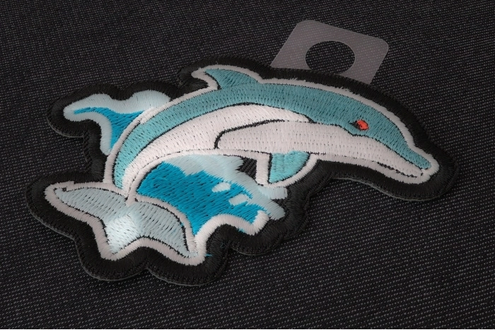 Ocean Dolphin Patch Embroidered measures 3x2.75 inches and is Embroidered in Black / Blue. The patch can be sewn on to Leather Biker Jackets, Vests or Chaps. The patch can also be ironed on to Shirts, Hats or Denim material such as Jeans. Features plastic iron on backing and clean laser cut embroidered borders. Japanese made iron on glue requires temperature between 270-290 Degrees Fahrenheit. Use a heat press for 30 seconds to adhere the patch permanently to your clothing. Using a regular household iron will probably not be as permanent as one hopes. If possible we recommend you sew on your patches for a more durable application. Never iron on patches to Leather or Nylon materials.