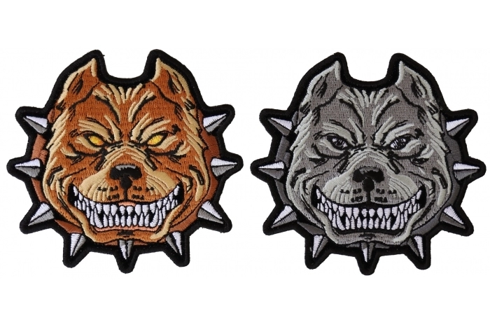 - Set of 2 Small Pitbull Patches in Gray and Brown