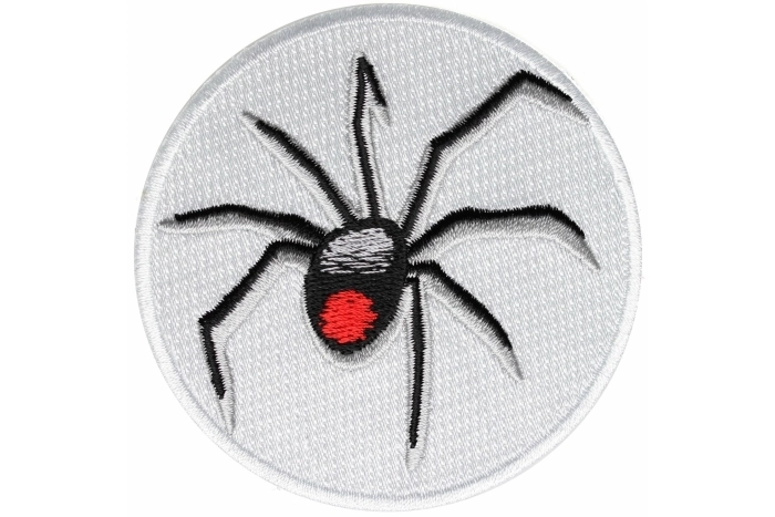 Black Widow Spider Iron on Patch measures 3.5x2.7 inches and is Embroidered in Black / White / Red. The Small Patch can be sewn on or ironed on to clothing such as Denim or Leather Jackets, Vests, Hats, Back Packs, Shirts. Features plastic backing and embroidered die cut borders.