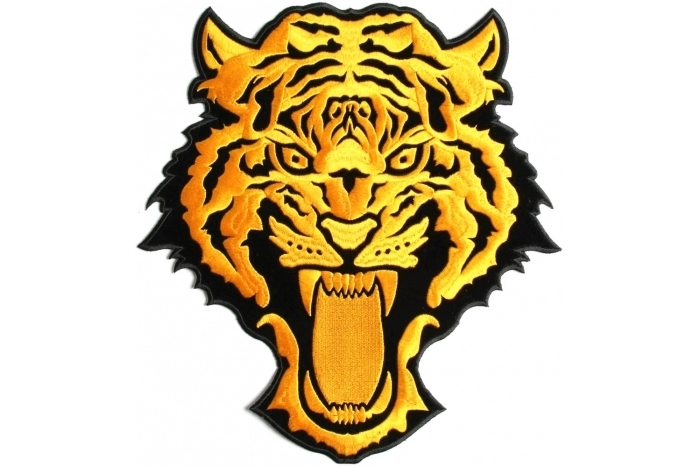 Vicious Tiger Patch Large in Orange is an embroidered iron on patch measuring 11x12 inch. Apply to your clothing by ironing on or sewing it on. Please do not iron on patches to leather or nylon material. The patch features a nice embroidered die cut border making it easy to sew on when ironing on is not an option. Please remember using a household iron will not produce professional results. Both heat and pressure is required to adhere an iron on patch properly to a garment.