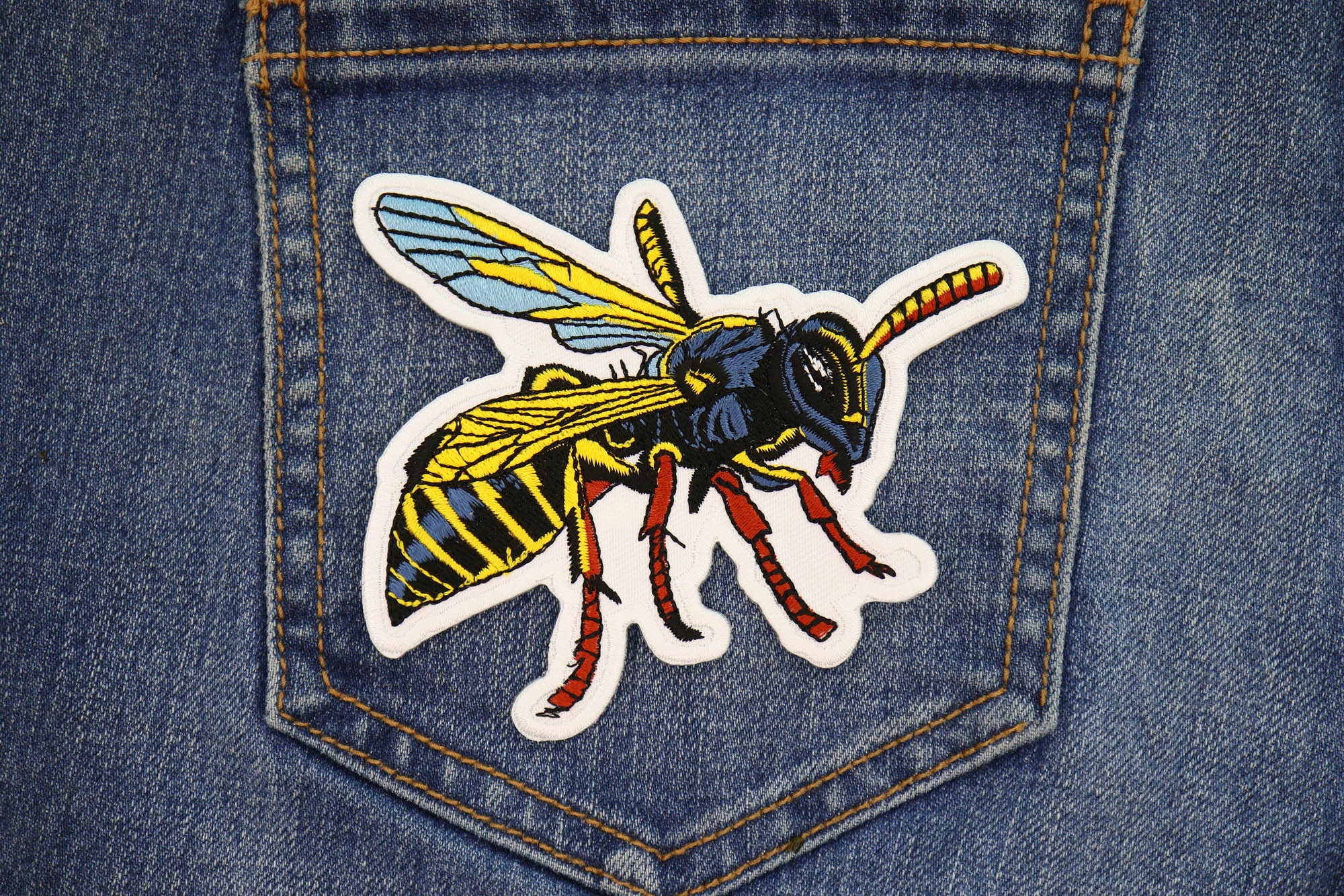 Wasp Patch measures 4x3.4 inches and is Embroidered in Black / Gray. The patch can be sewn on to Leather Biker Jackets, Vests or Chaps. The patch can also be ironed on to Shirts, Hats or Denim material such as Jeans. Features plastic iron on backing and clean laser cut embroidered borders. Japanese made iron on glue requires temperature between 270-290 Degrees Fahrenheit. Use a heat press for 30 seconds to adhere the patch permanently to your clothing. Using a regular household iron will probably not be as permanent as one hopes. If possible we recommend you sew on your patches for a more durable application. Never iron on patches to Leather or Nylon materials.