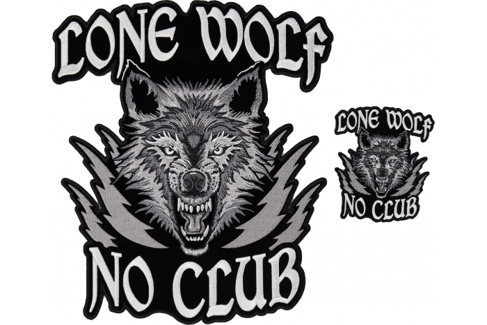 - Lone Wolf No Club Iron on Biker Patch Set of Small and Large Patches