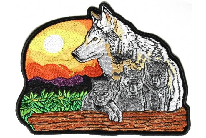 - Wolf and Cubs Sunset Embroidered Iron on Patch