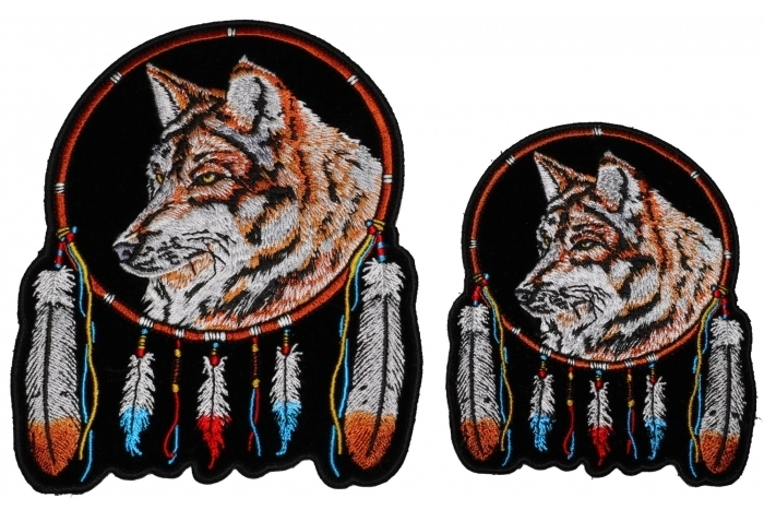 - Wolf with Feathers Dreamcatcher Small and Medium Set of 2 Patches