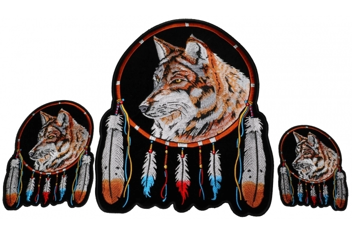 - Wolf with Feathers Small Medium and Large Set of 3 Patches